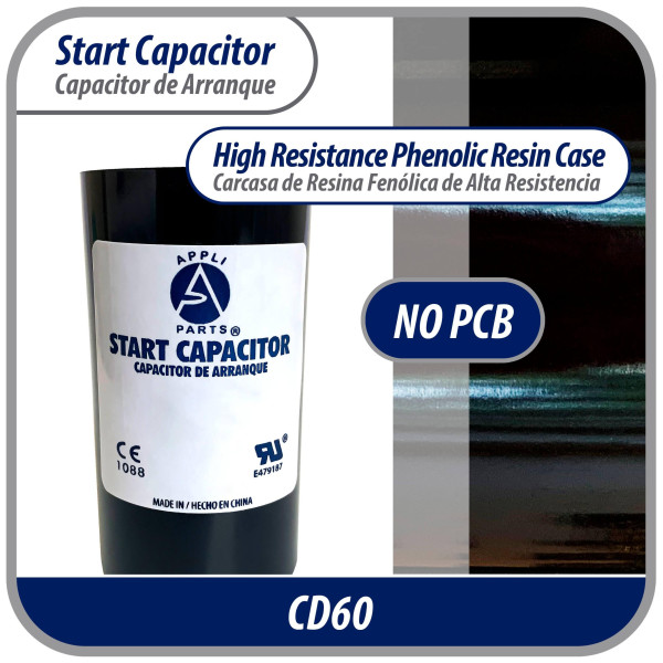 - Certified: A CD60 type capacitor is a single phase motor start capacitor, electrolytic, non polarized, high capacitance, and intermittent duty type. Designed to provide high starting torque for a few seconds when the motor starts.