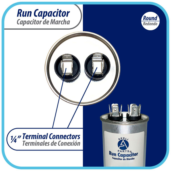 Universal: Remplaza cualquier marca con la misma capacitancia y capacidad. Funciona con 370V. Conectores de 1/4 pulg