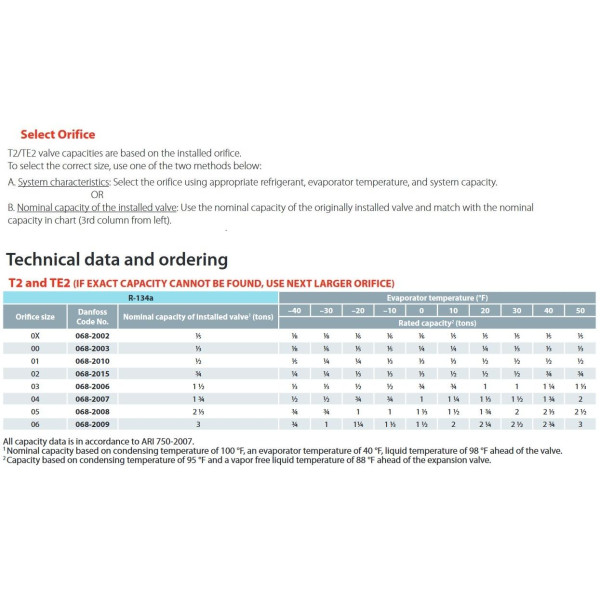 Danfoss 068Z3346 1/5 - 3TR Cuerpo de Valvula de Expansion, T 2, R134a,R513A, 3/8x1/2 pulg, Flare Roscable, Ecualizacion Interna, Single-flow, -40 a 10 C, Capacidad determinada Segun Orificio, Producto Identico 0608Z3542